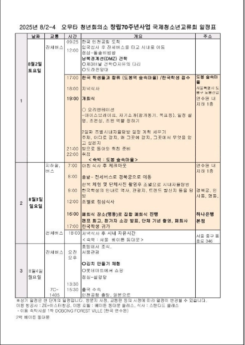 ■출국 : 8/4(월) 오전 김치담기 체험 후 출국