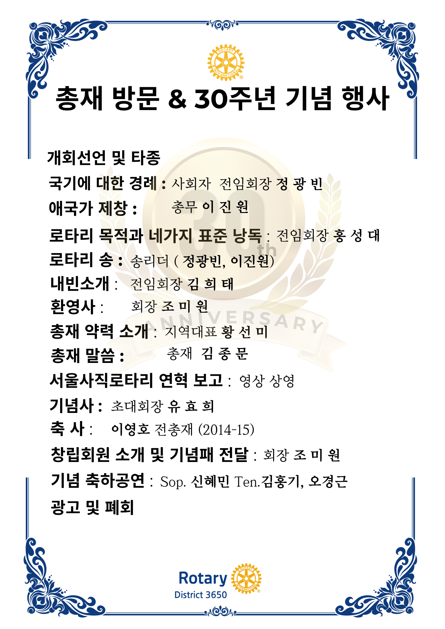 [클럽소식] 서울사직RC 총재방문 30주년 기념행사