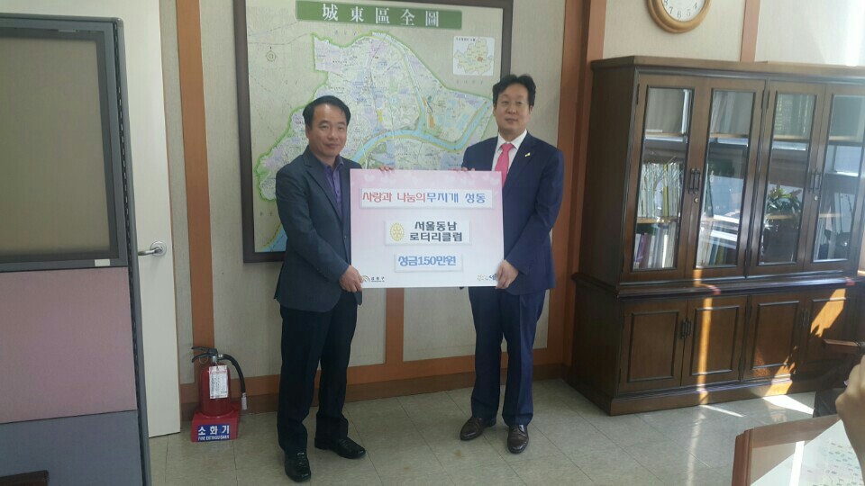 서울동남RC 성동구청(150만원), 밀밭모자쉼터(50만원), 서일대학교(150만원)에 각각 성금 기부