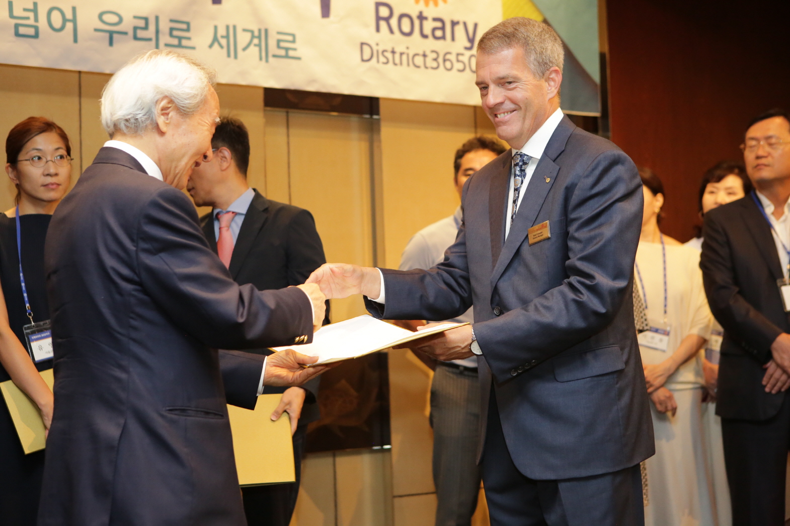 아울러 “임팩트 있는 봉사 프로젝트와 멤버십의 성장, 로타리안 가족들의 동참유도, 직업에 충실한 봉사와 리더십 발휘를 통해 3650지구 모든 회원들이 회원증강의 열정과 불씨를 키워가자”고 당부했다.