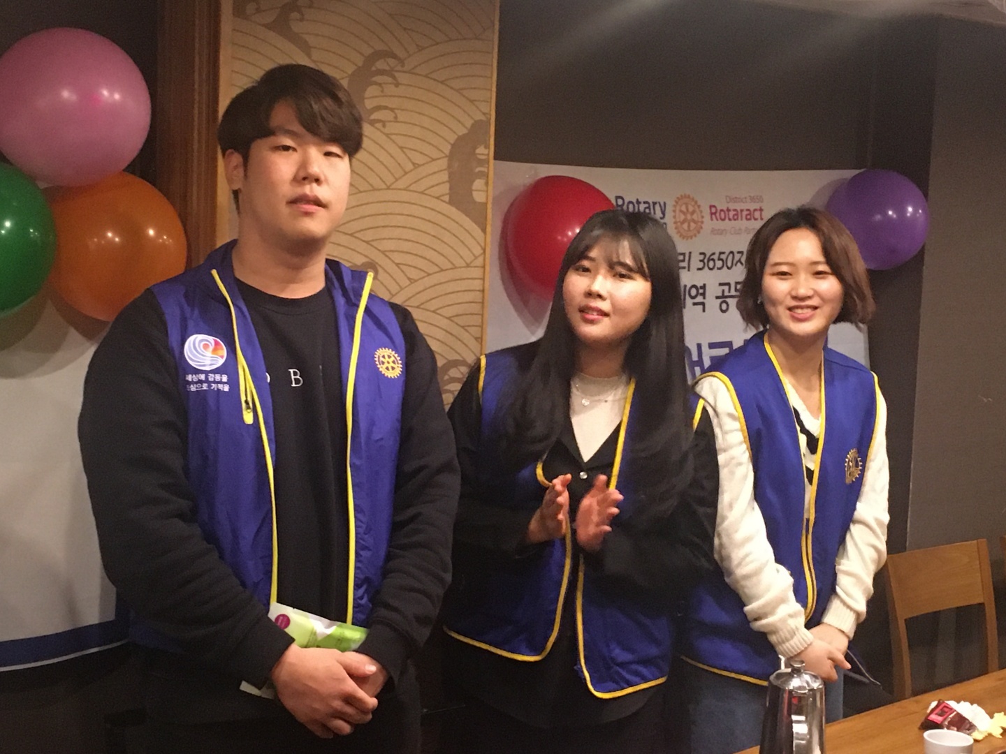 3650지구 로타리안들의 하나 된 마음으로 3, 6지역 대표님과 각 클럽회장님께서 애를 쓰시고 지원해주셔서 감사드린다. 한국 대만 일본 로타랙트 친선대회 참가로 인해 출장중이던 일본 나리타에서도 끊임없이 카톡으로 준비회의를 했던 로타랙트 김창재 지구대표에게 각별한 감사를 보내며 정말 추웠던 날들 더운물도 나오지 않는 집에서 언 손을 부비며 최선을 다해 봉사해준 중앙, 서울남산, 숭실남산, 덕성, 숙명, 이화, 한양캠피 로타랙트 한명 한명에게 사랑과 감사를 전한다.