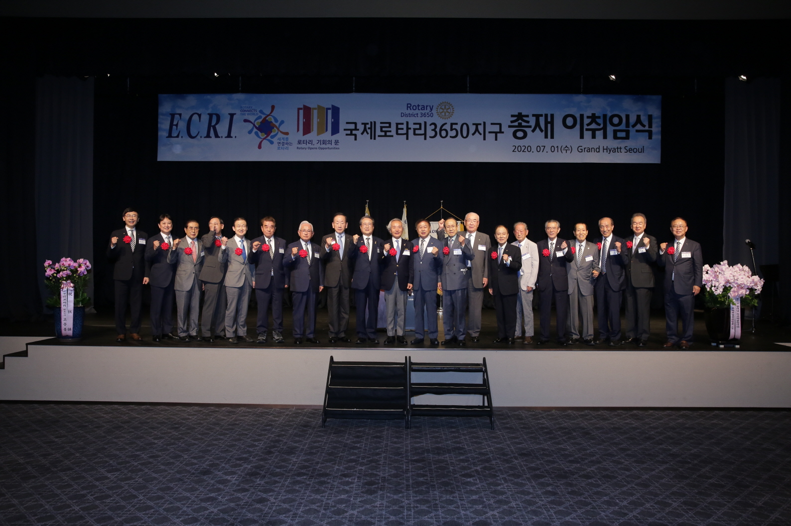 국제로타리 3650지구 유장희 신임총재(서울회현RC)와 박수부 이임총재(서울중앙RC)의 총재 이취임식이 7월 1일(수) 그랜드하얏트 서울 호텔 그랜드볼룸에서 각 클럽 회장, 총무, 지역대표, 지구임원을 비롯하여 이동건 전RI회장, 채희병 전RI이사, 민병국, 윤영석 로타리재단 전이사 등 우리 지구 총재단 등 250여명이 참석한 가운데 성황리에 개최됐다.