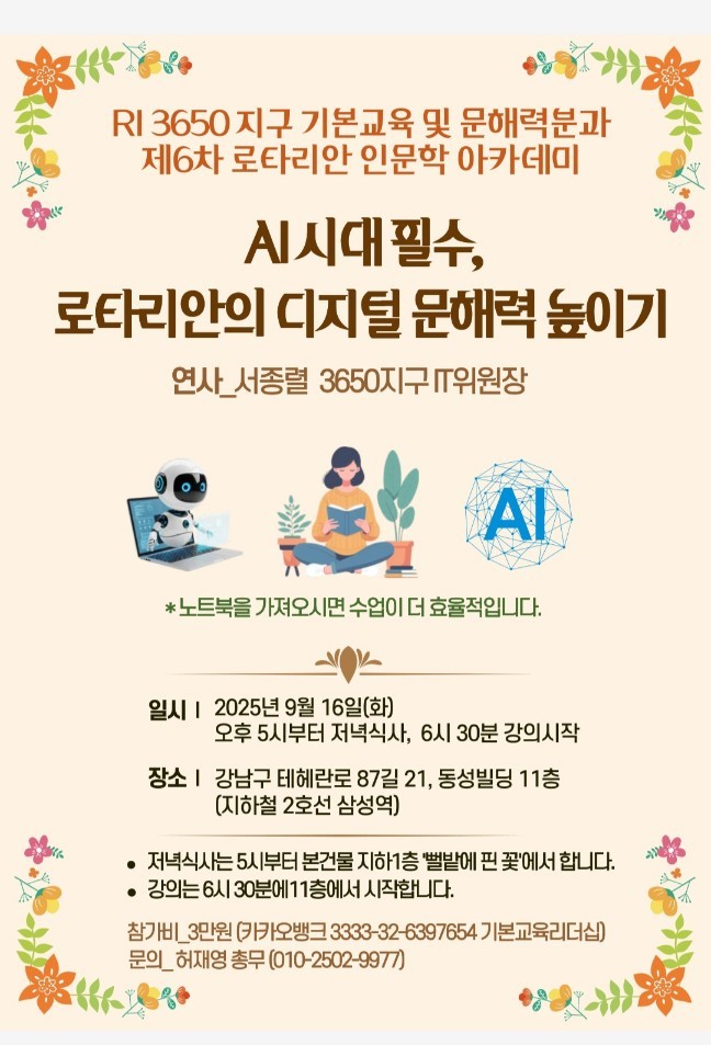 연제 : AI 시대 필수, 로타리안의 디지털 문해력 높이기