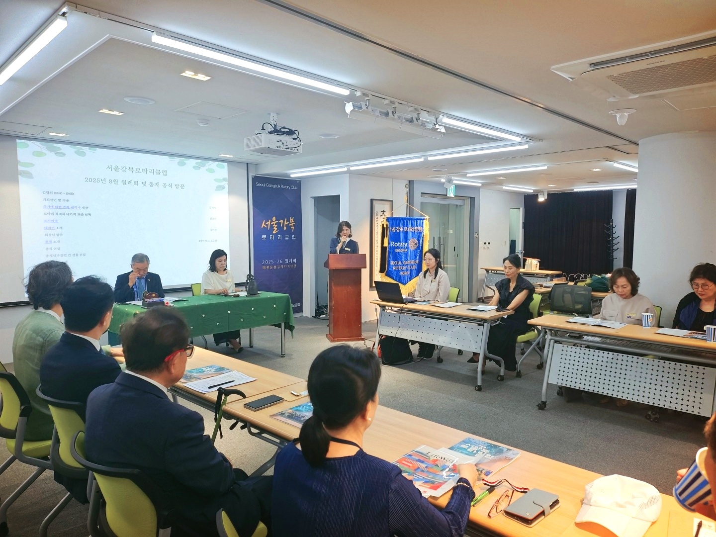 서울강북로타리클럽(회장 김미행)은 지난 8월 21일(목), 서울 서초구 매헌윤봉길의사기념관 2층 세미나실에서 8월 월례회와 함께 김종문 총재 공식방문 행사를 진행했다.